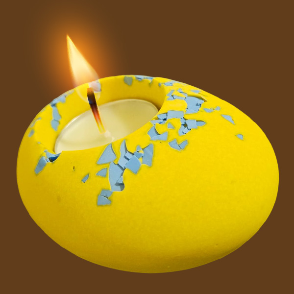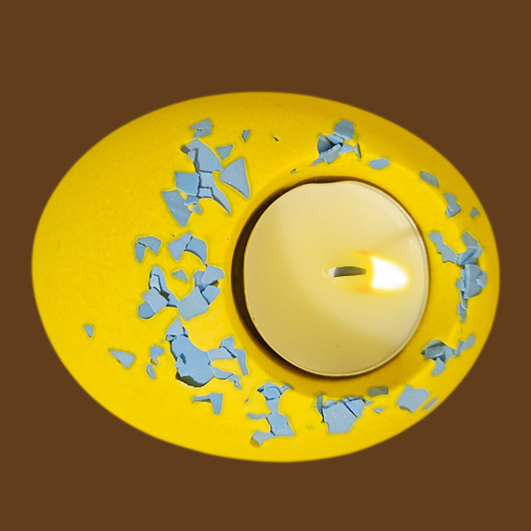 Yellow pebble blue speckled candle holder | AED 40.00