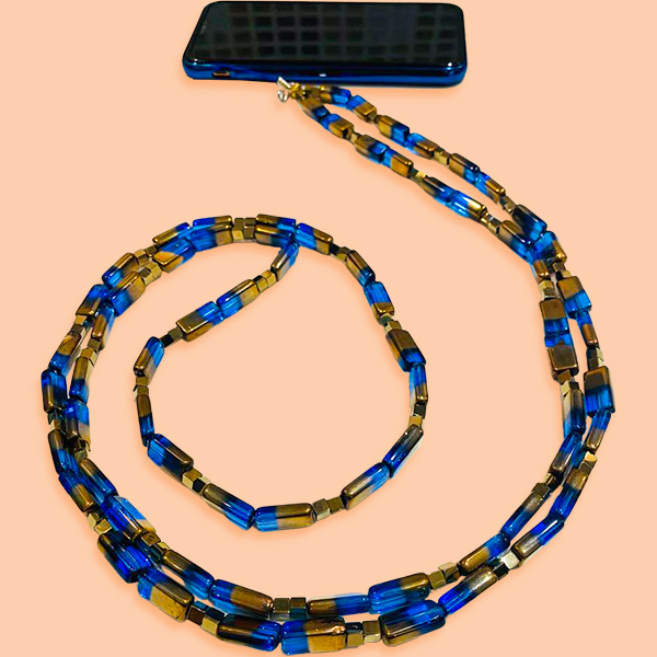 Sea of blue and gold cross-body phone strap | AED 75.00