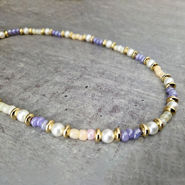 With hues of different color pastels, this necklace is sure to brighten all outfits.